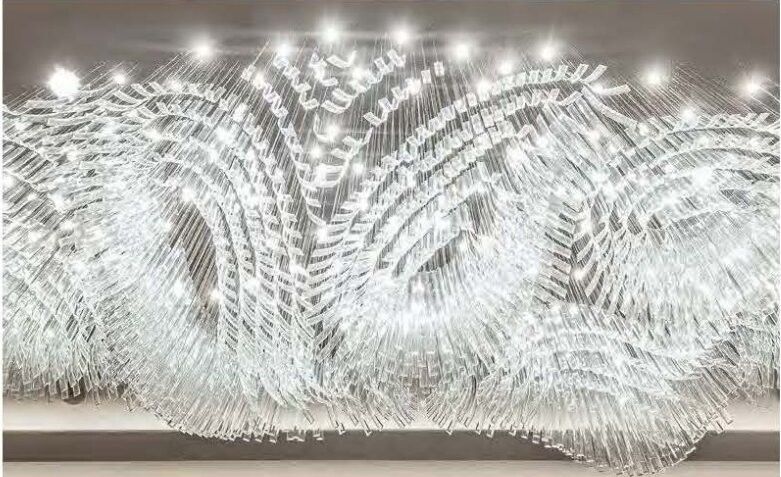 3مصباح في ردهة الفندق مع أنابيب زجاجية واضحة