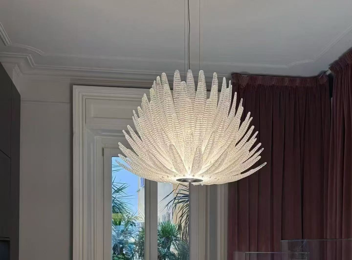Luxury Post-modern Light White Sand Handmade Glass Room Simple Atmosphere American Chandelier