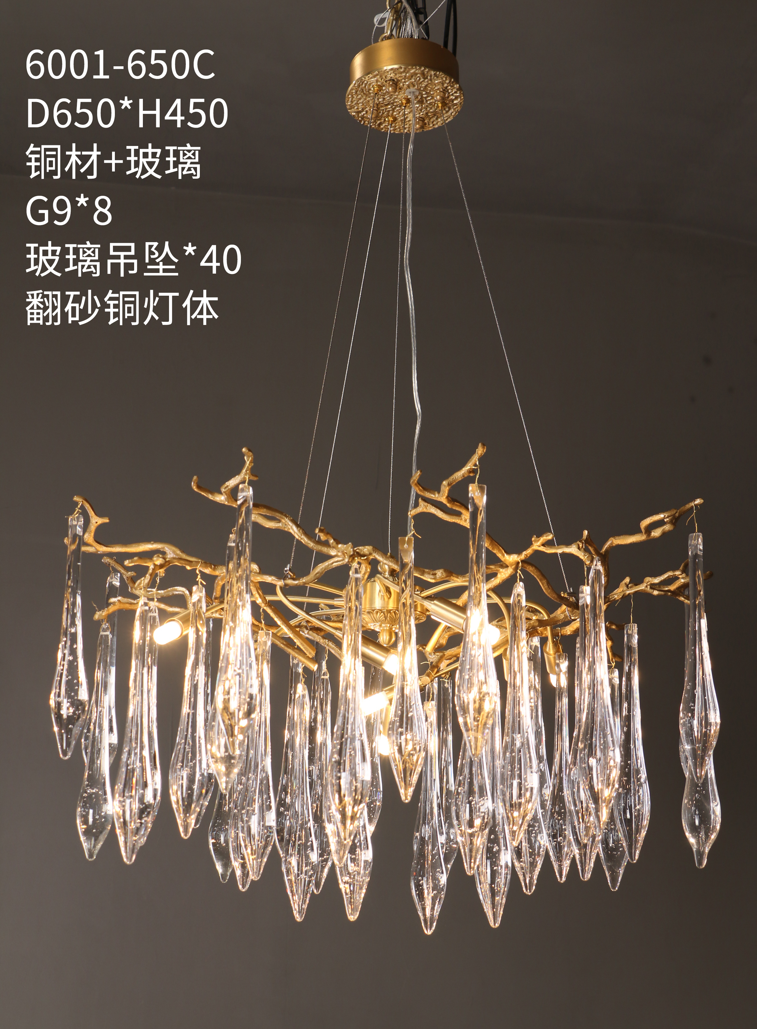The water drop shape glass rod has exquisite craftsmanship and transmits light evenly, softly and without glare.