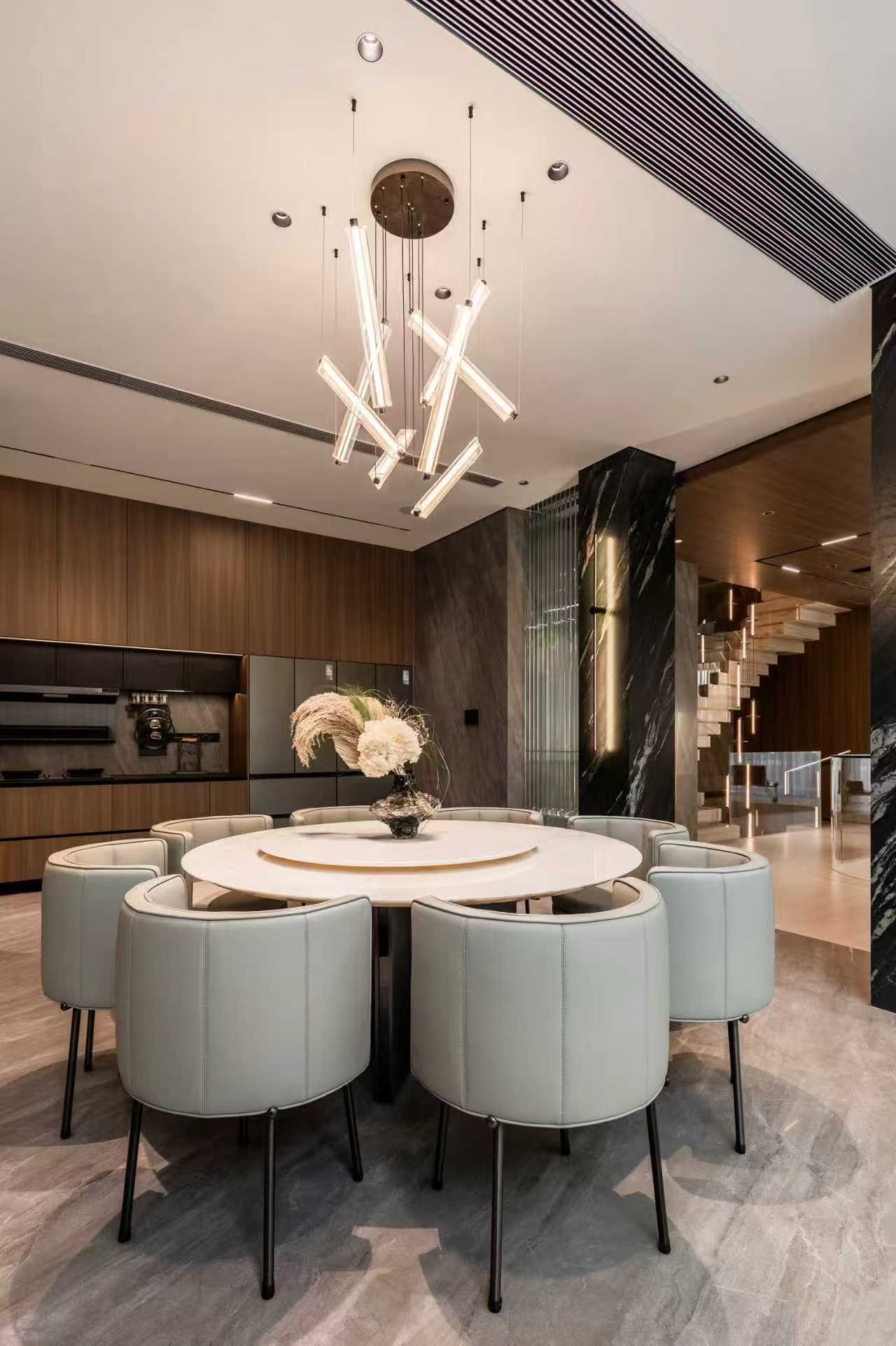 • Living Room: Vertical installation as sculptural focal point