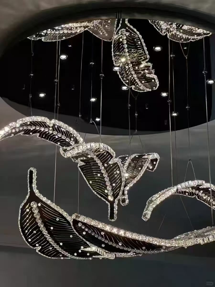 Luxury Crystal Feather Chandelier Modern Leaf Pendant Light for Staircase & Villa 0 Luxury Crystal Feather Chandelier Modern Leaf Pendant Light for Staircase & Villa 1 Luxury Crystal Feather Chandelier Modern Leaf Pendant Light for Staircase & Villa 2